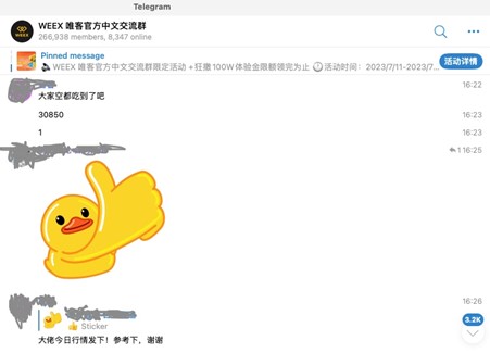 第一步:加入指定WEEX唯客官方电报群:https://t.me/weex_group