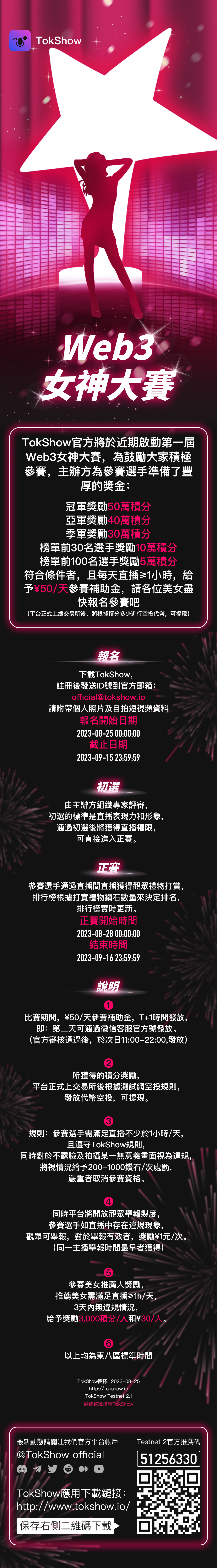 TokShow官方第一届Web3女神大赛启幕,奖金丰厚
